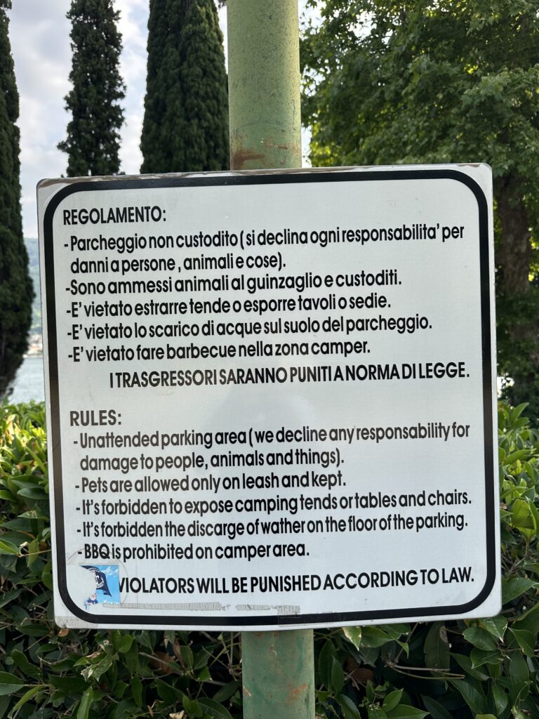 Am Stadtrand, direkt an der Seepromenade, befindet sich der Campingplatz Sosta Camper „Paraiso“, wo wir die ersten Tage unseres Sommerurlaubs 2025 verbringen wollten.