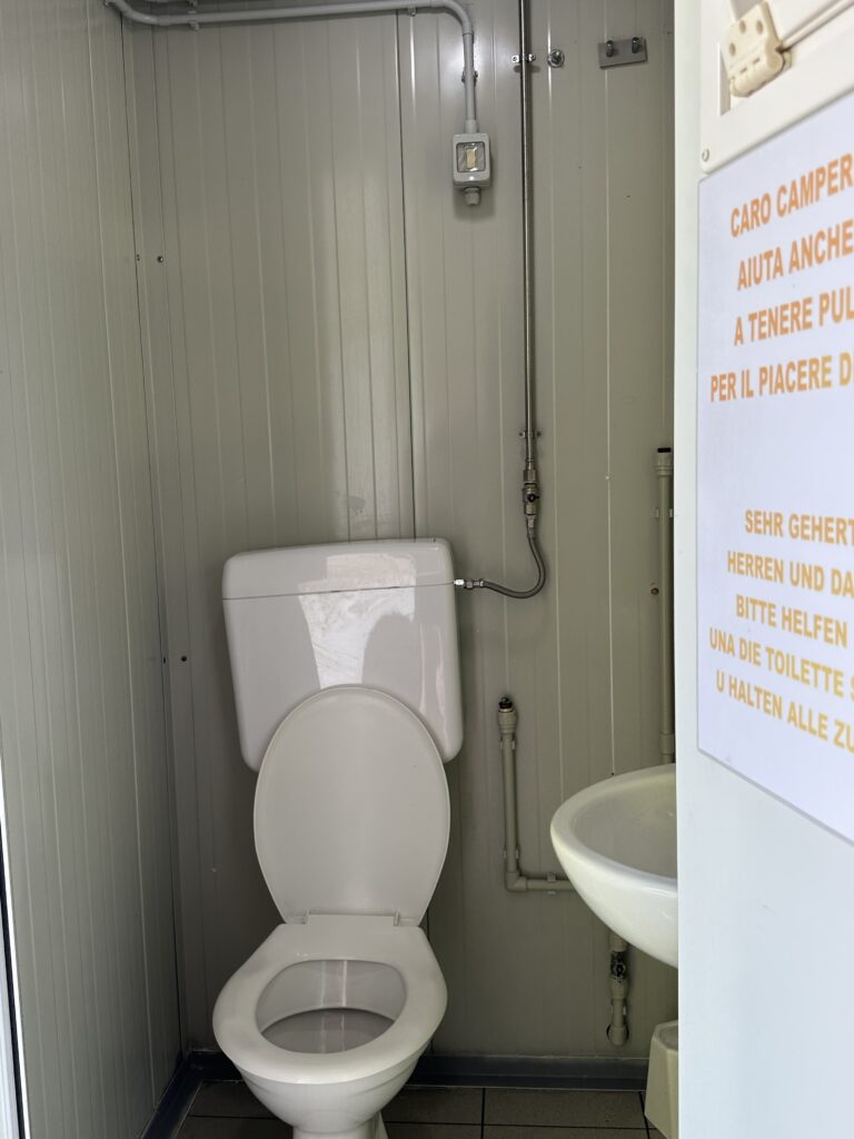 Während unseres Aufenthalts betrug der Preis pro Nacht 26 EUR. Darin enthalten waren der Stromanschluss für den Wohnwagen, die Müllentsorgung, die Nutzung der Toiletten und des Spülbereichs, das unbegrenzte Befüllen des Autowassertanks sowie die Abwasserentsorgung. Es gab zwei Duschräume auf dem Gelände, deren Nutzung jedoch kostenpflichtig war. Ich habe die Duschräume nicht genutzt (ich habe im Auto geduscht) und kann daher nicht sagen, wie viel die Duschen dort kosten.