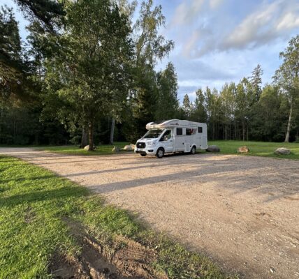 Auf dem Weg zu den Kuressaare-Thermalbädern machte ich in Liiva Halt, da es schon spät war. Ich parkte auf dem Parkplatz Liiva Kosnum und hatte genügend Zeit, die Umgebung zu erkunden. Hinter dem Marktplatz in Liiva entdeckte ich, dass die Gemeinde Muhu einen ordentlichen, großen Parkplatz angelegt hat, auf dem Lkw, aber auch kleinere Autos und Wohnwagen kostenlos parken können. Neben dem Parkplatz, hinter dem Marktplatz, gab es saubere Toiletten und eine Dusche, die rund um die Uhr geöffnet war. Es gab zwar keinen Strom-, Wasser- oder Abwasseranschluss, aber ansonsten war es sehr komfortabel und sicher, dort anzuhalten. Für alle, die auf Saaremaa etwas vorhaben und unterwegs einen Zwischenstopp einlegen oder übernachten müssen, ist dieser Parkplatz also ideal.